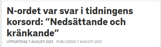 Det var i ett korsord i Nya Lidköpingstidningen det dök upp, det ord som är värre än alla skjutningar och sprängningar tillsammans och som fick Kulturnyheterna att rasa på ett sällan skådat sätt. ”Mörkhyad person” på fem bokstäver skulle bli N-ordet, vilket föranledde skarpa fördömanden och krav på tidningens avbön.
