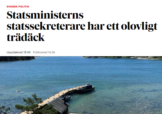 Malliga morgontidningen Dagens Nyheter kan det här med nyhetsvärdering och vet vad som verkligen bör uppmärksammas. Därför avslöjar de nu att statsministerns statssekreterare Johan Jakobsson har ett olovligt trädäck vid sitt fritidshus i skärgården.