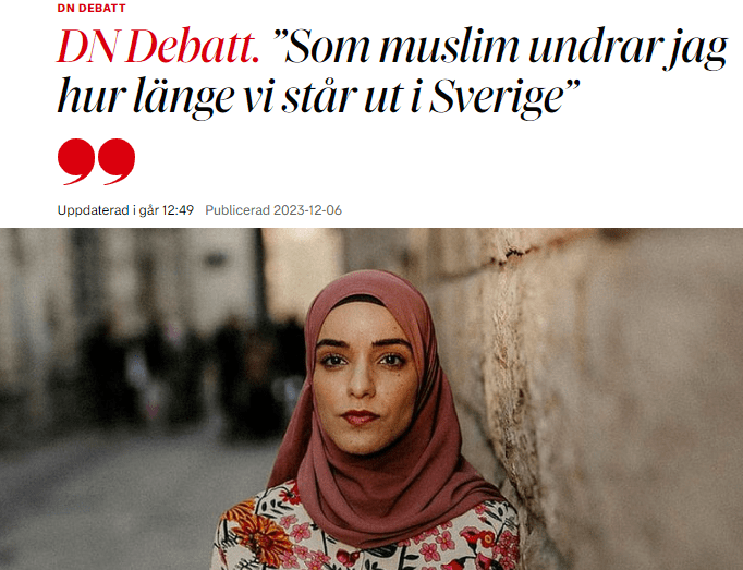 Den 6 december publicerade malliga morgontidningen en debattartikel av Kawtar Chibli, där denna beklagar sig över hur hemskt det är att vara muslim i Sverige, ett av världens minst rasistiska länder. Som muslim undrar jag hur länge vi står ut i Sverige skriver hon (låst artikel):