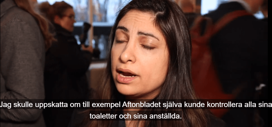 ”Jag skulle uppskatta om Aftonbladet själva kunde kontrollera alla sina toaletter och sina anställda”, sa hon med illa dold irritation.