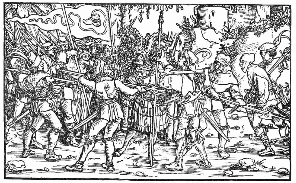 BILD: Upproriska bönder omringar riddare under de tyska bondekrigen 1524-25.