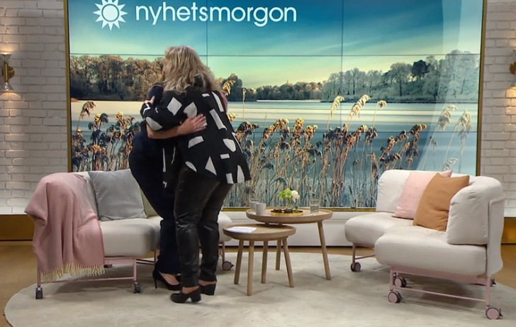 Foto: Skärmdump Morgonstudion, TV 4. Jenny & Stina kramas och myser.