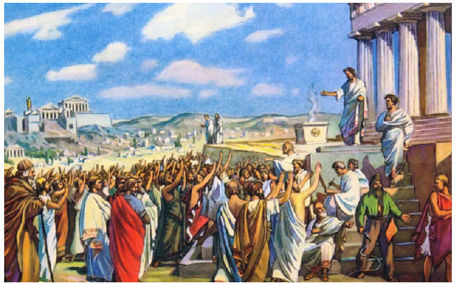 BILD: Demokrati i antikens Grekland. Gammal skolbok.
