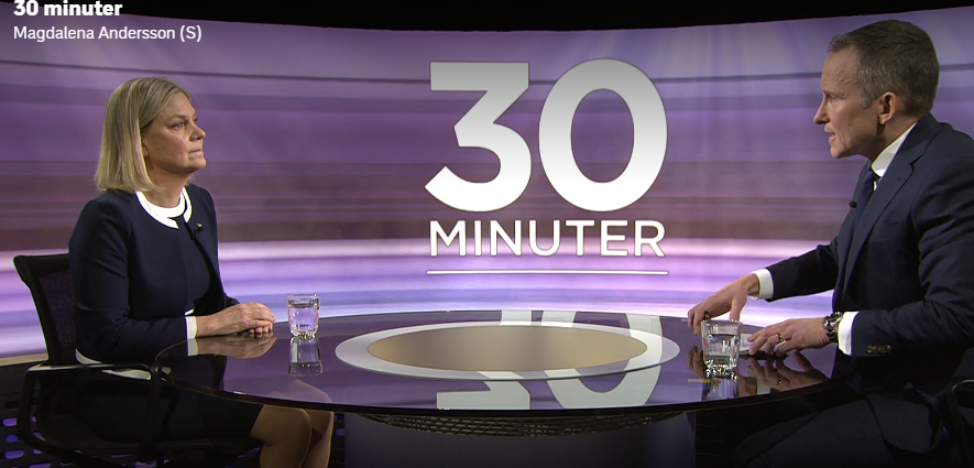 Efter Magdalena Anderssons medverkan i 30 minuter får SVT:s Anders Holmberg lågt betyg av tittarna. Moderaten Lars Beckman skriver på X: ”Jämför gärna Anders Holmberg intervju med Ebba Bush och Magdalena Andersson i #30minuter i SVT. Fundera sedan över vad skillnaden beror på. ”