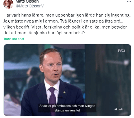 Foto: Skärmdump Mats Olssons profil på X