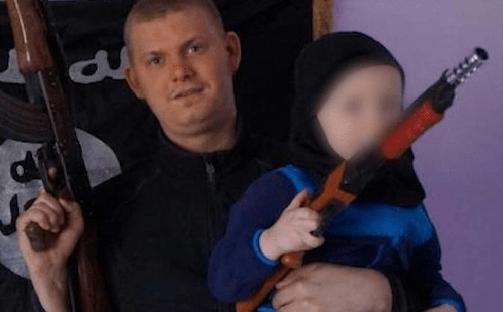 Foto: Michael Skråmo poserar med ett av sina barn för IS-kalifatet (Facebook)