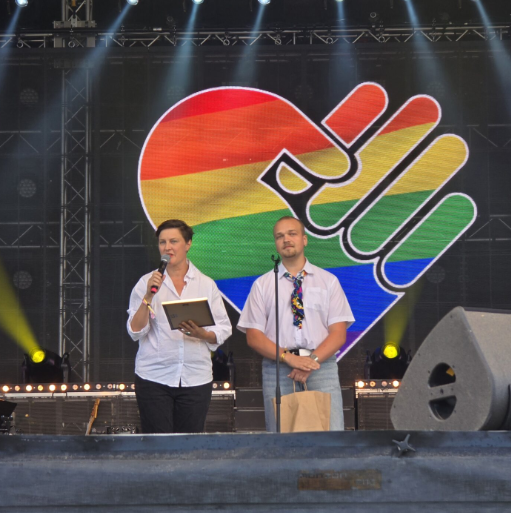 Foto: RFSL-representanter presenterar vinnaren av skamstraffet ”Rosa tisteln” 2024, skärmdump RFSL
