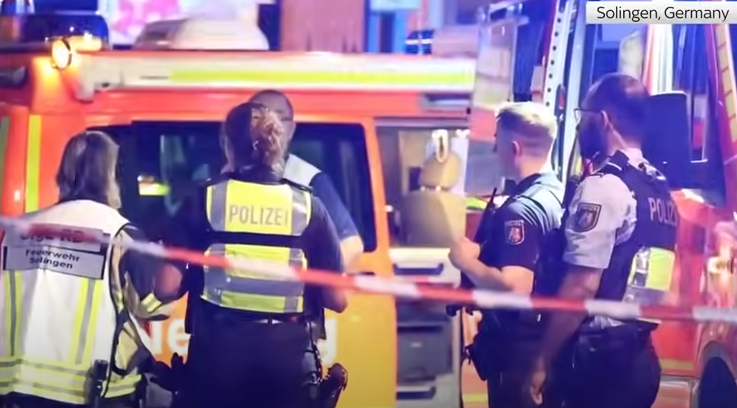 Tre personer dog och ytterligare åtta skadades, varav fem allvarligt, när en man attackerade besökare på en mångfaldsfestival i Solingen, Tyskland på fredagskvällen. Mannen, som enligt vittnesuppgifter har arabiskt utseende, är fortfarande på fri fot.