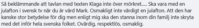 Julaftonens sändningar med Mark Levengood som julvärd hann knappt avslutas förrän SVT lade ut ett inlägg på sin Facebooksida, där deras utvalde förväntades få hyllningar och glada tillrop. Och många hjärtan blev det. Decenniers fostran från SVT har gjort en majoritet av folket lydigt och följsamt och Mark Levengood har så länge framställts som den snällaste och finaste människan på jorden att det har blivit en sanning för många.
