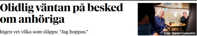 Hans väntan är ”olidlig” får vi veta. Hur känns väntan för gisslans anhöriga? Det får vi inte veta eftersom DN inte bryr sig.