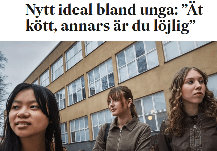 En granskning som Svenska Dagbladet (låst artikel) har gjort visar att unga blir allt mindre engagerade i klimatet. Det har också blivit inne att äta kött, efter alla år av påtvingade vegankrav från klimatfanatiker, enligt de gymnasister som Svenskan intervjuat.