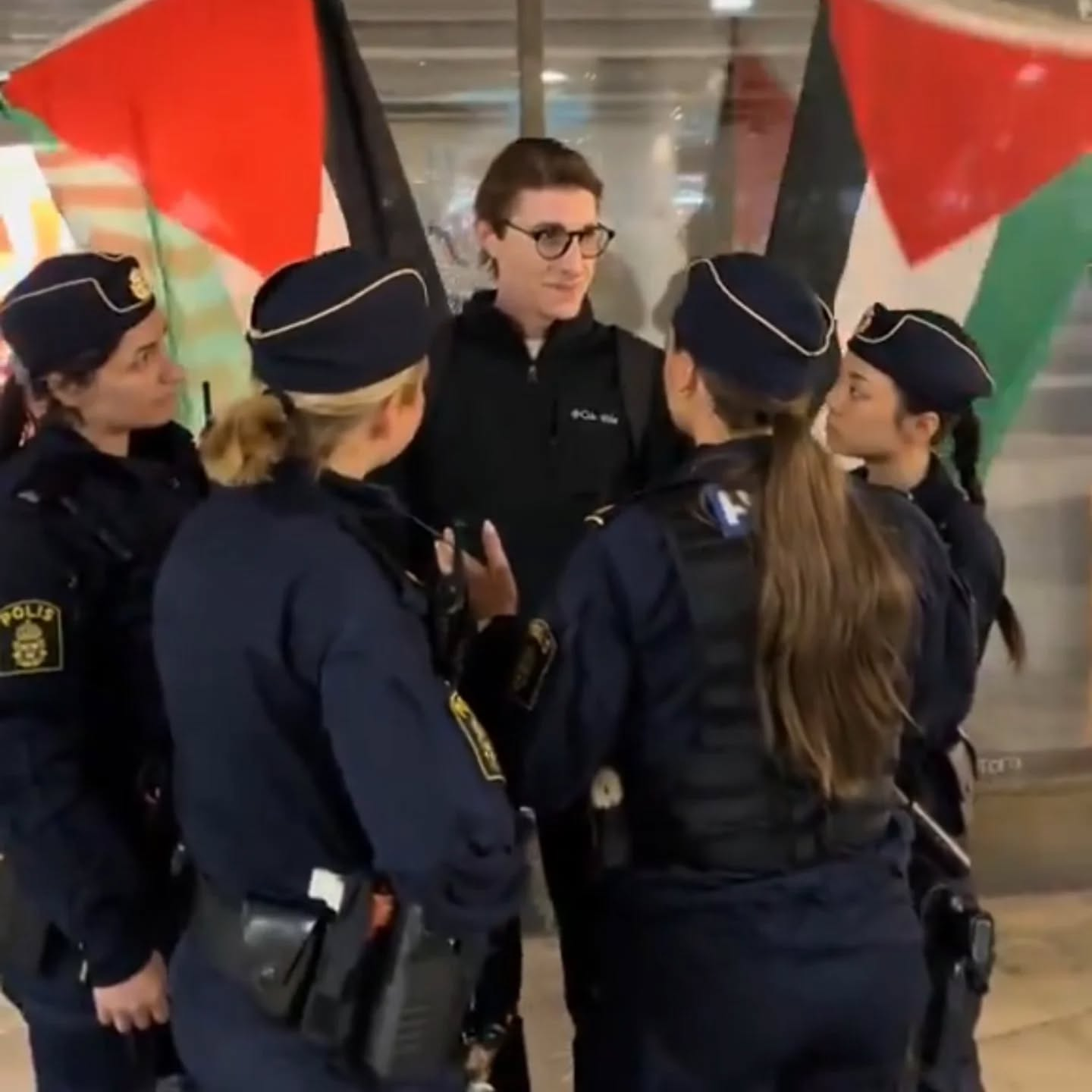 De tuffa polisernas modiga agerande följdes noggrant av palestinaaktivisterna, under ledning av den man som på sociala medier går under benämningen ”kryckmannen” och som bland annat är ökänd för att vilja ”avveckla Israel” och för att ha ofredat Ebba Åkerlunds far på årsdagen av terrordådet som tog Ebbas liv.
