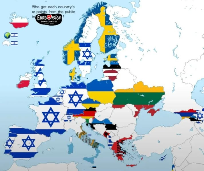 Foto: Översikt över folkets röster i Eurovision 2025, sociala medier
