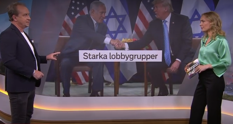 Den sprids också flitigt i svenska medier, inte minst i SVT. Den svenska journalistkåren använder visserligen ett nyspråk, där ord som ”jude” och ”den judiska världskonspirationen” ersätts med ord som ”israel” och ”lobbygrupper”, men det förändrar inte innebörden.