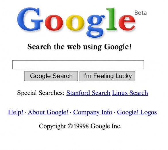 Samtidigt som Microsoft och dess likar alltså retar mig måste jag erkänna att dessa företag berikar mitt liv på oanade sätt. På bilden syns Google i sitt ursprungliga skick från 1998. För mig har sökmotorn inneburit ett kvantumsprång i produktivitet eftersom den genom åren bland annat besparat mig hundratals eller kanske tusentals tidskrävande utflykter till bibliotek för att inhämta någon sorts specialinformation som jag behövt för en krönika. Men det märkvärdigaste av allt är att jag fått åtnjuta gåvan att hämta tillförlitlig information i de mest esoteriska ämnen alldeles gratis!