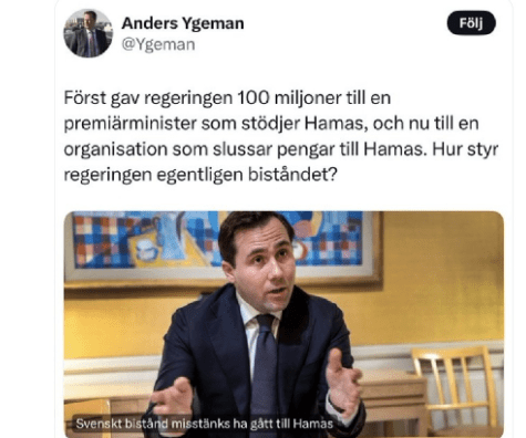 Det frågade han sig inte när han själv satt i regering i alldeles för många år. Om någon ens andades att biståndet till Gaza skulle kunna tänkas hamna i fel händer när en socialdemokratisk regering styrde och ställde blev denne genast utpekad som rasist, fascist, nazist, islamofob och ett hot mot demokratin.