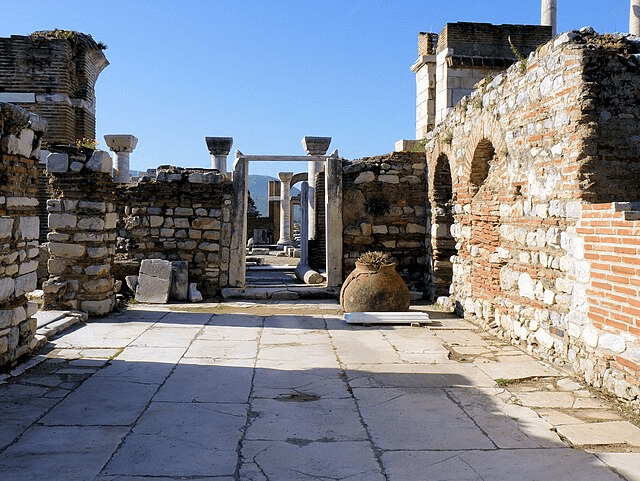 Senare, på 500-talet efter vår tideräkning, lät kejsar Justinianus uppföra en stor basilika till hans ära. Än idag vittnar ruinerna om vilken storslagen kyrka det var.