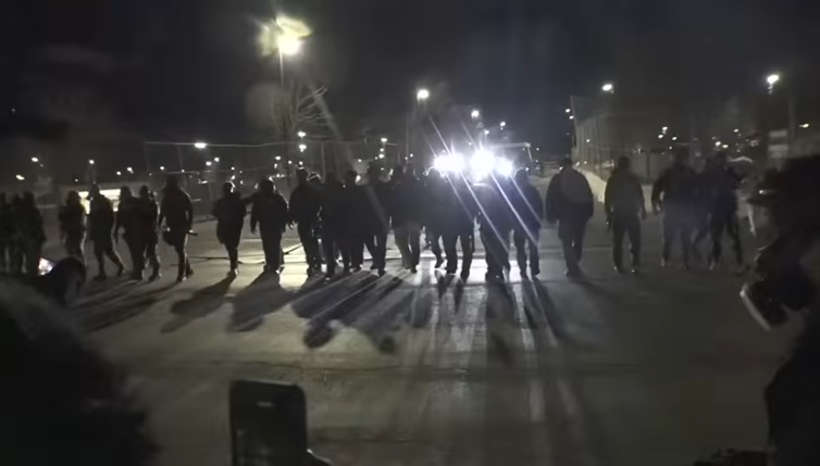 Bild: Protester i Minneapolis efter den tragiska dödsskjutningen som skedde den 7 januari (Skärmdump Youtube)