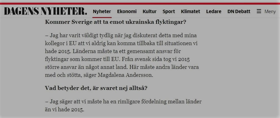 Jag vill direkt slå fast att jag anser det vara rätt att EU och därmed också Sverige tar emot flyktingar från Ukraina. Kvinnor och barn som flyr från ett anfallskrig i vår relativa närhet behöver vår hjälp.