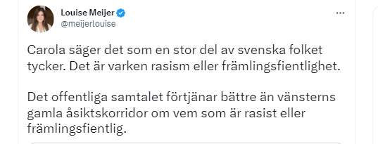 Efter att Carola ventilerat sin uppfattning om värdet av att bevara svenska traditioner, och bland annat hånats av kändisen Alex Schulman, får hon nu stort stöd på debattsidor och sociala medier. I en debattartikel i Expressen skriver liberale politikern Robert Hannah: