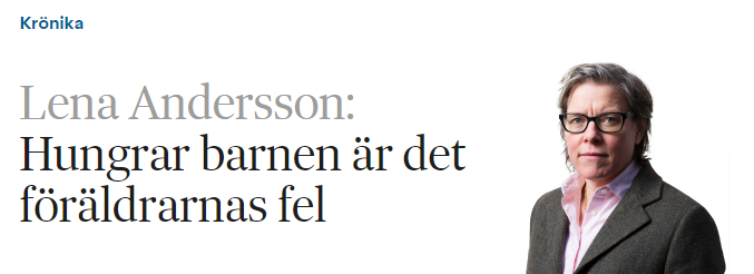 Nyligen skrev Lena Andersson i Svenska Dagbladet om den påstådda svälten bland svenska barn. Det har skapat en infekterad debatt med svallande känslor.