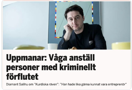 SVT-reportern Diamant Salihu jämför den kände yrkeskriminelle ”kurdiske räven” med en entreprenör och uppmanar näringslivet att ”våga” anställa kriminella.