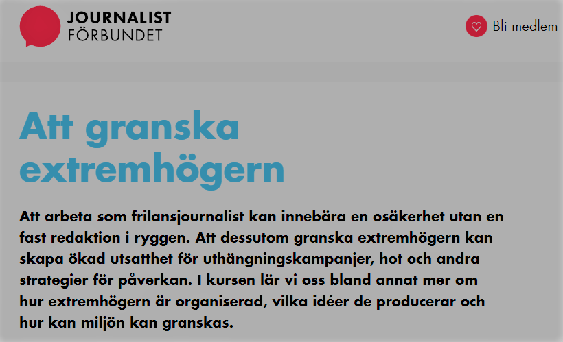 Svenska Journalistförbundet erbjuder en gratiskurs från Expo i ett seminarium på nätet där det gäller att ”granska extremhögern”.
