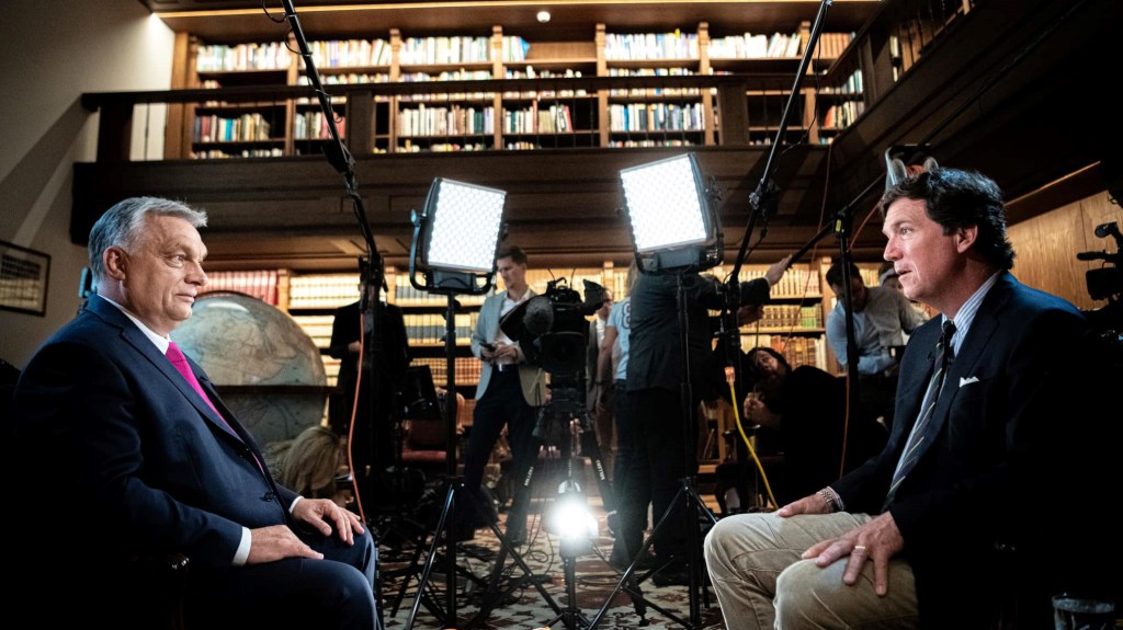 I en 19 minuter lång intervju möter Fox News ankare Tucker Carlson Ungerns premiärminister Viktor Orbán i Budapest. Samtalet handlar om den nationellt sinnade, kristna, familjebaserade politik som landet tillsammans med flera andra före detta satellitländer i Östeuropa valt, och vars ledare Joe Biden kallar för politiska gangsters (thugs).