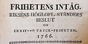 DENNA DAG I SVENSK HISTORIA Under ledning av den österbottniske prästen Anders Chydenius genomdrev mösspartiet vid riksdagen i Gävle den 2 december 1766 antagandet av en tryckfrihetsförordning som stoppade censur och införde offentlighetsprincipen för offentliga handlingar i svenska myndigheten, därmed även i Finland. Undantagna var smädande av konungens majestät samt avtramp i en rad religiösa spörsmål som stadgade av Svenska kyrkan.
