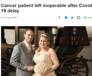 En cancerpatient i Storbritannien nekades operation i tid på grund av coronaförsening. Adrian Rogers, 46, kommer inte längre att kunna botas. Enligt Rogers har människor dött på grund av coronaförseningarna: