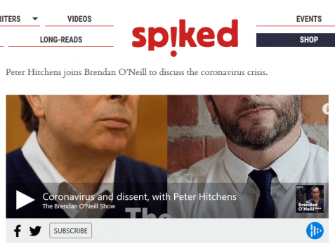 I ett nytt avsnitt av podden The Brendan O’Neill Show (2/4 2020) samtalar Brendan O’Neill, chefredaktör för webbtidningen Spiked, med den konservative författaren och debattören Peter Hitchens, kolumnist på Mail on Sunday.