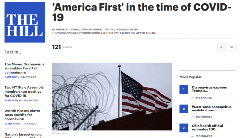 Ett reportage i Los Angeles Times varnar för att coronaviruset kan gynna nationalismen. I artikeln
