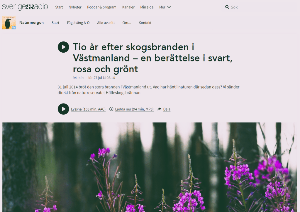 En av fördelarna av att vakna tidigt på lördagsmorgnarna är inte bara det numera nyttiga och hälsobringande morgonkaffet utan också att man kan lyssna på Naturmorgon som inte sällan har något intressant att berätta. Reportrarna är genomgående insiktsfulla och är ännu inte, som övrig radio och SVT, helt präglade av klimatrörelsens undergångskult.